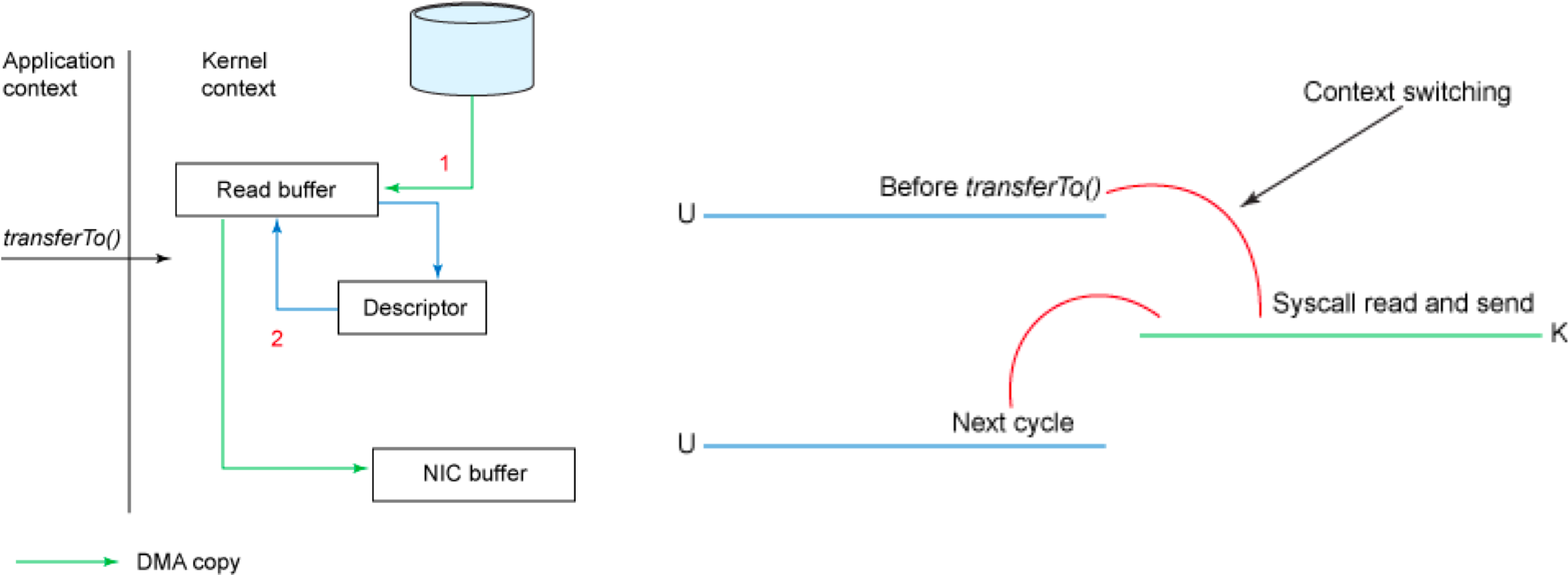 注: transferTo 和 transferFrom 并不保证一定能使用零拷贝。实际上是否能使用零拷贝与操作系统相关,如果操作系统提供 sendfile 这样的零拷贝系统调用,则这两个方法会通过这样的系统调用充分利用零拷贝的优势,否则并不能通过这两个方法本身实现零拷贝。